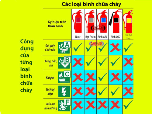 – Bình CO2 không chữa được đám cháy từ kim loại, và một số chất giầu oxy.