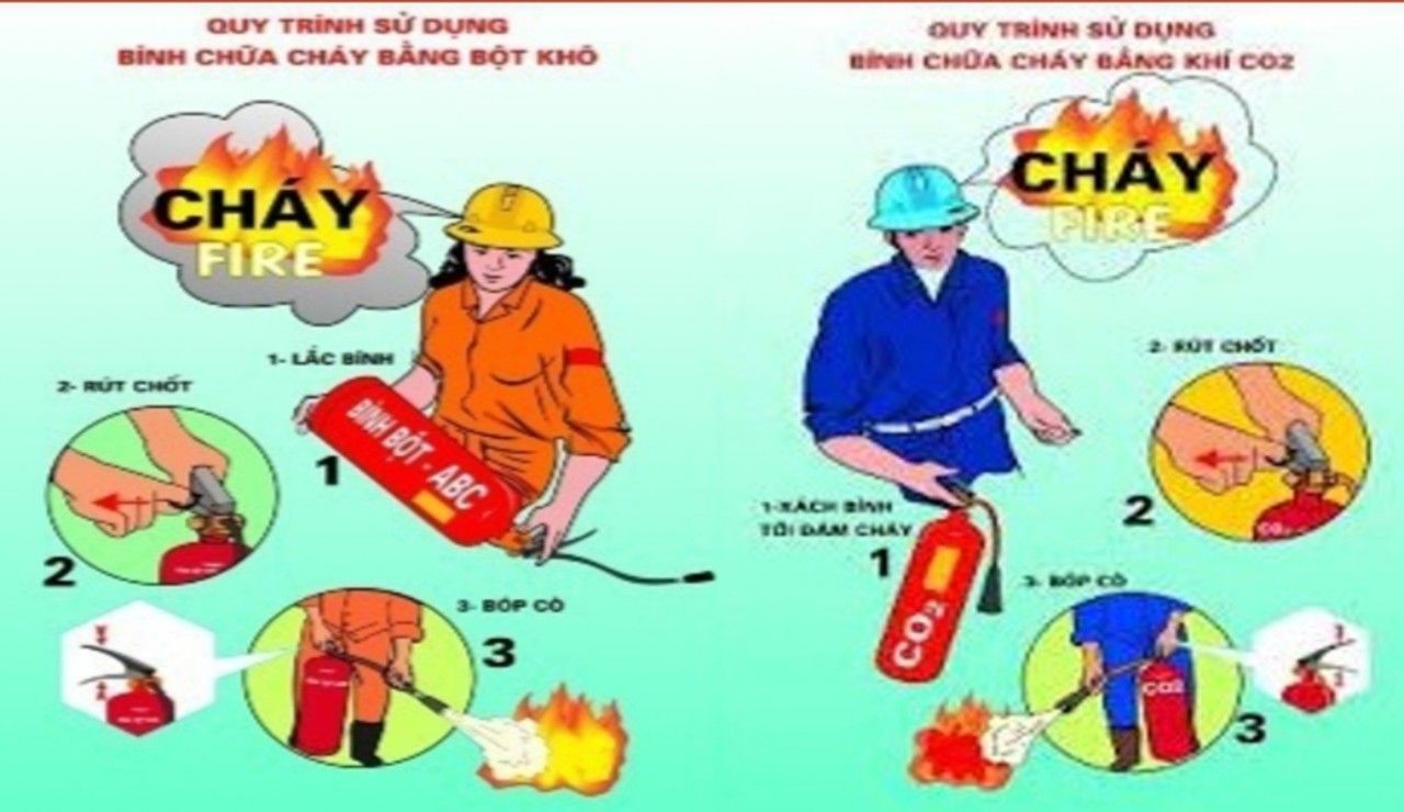 2. Cách sử dụng bình chữa cháy dạng bột khô và dạng khí C02