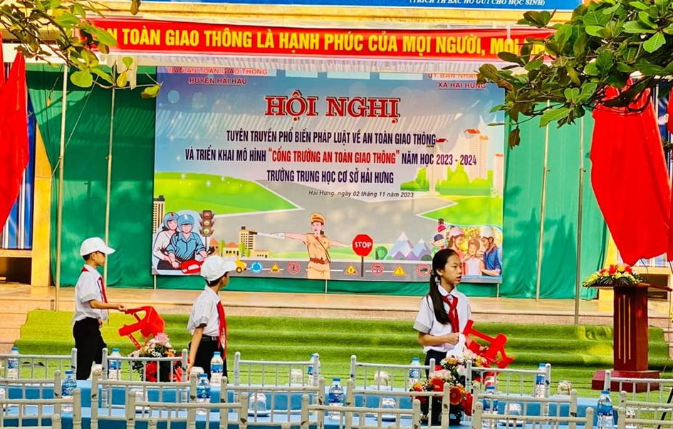 Nhằm tăng cường công tác tuyên truyền, giáo dục về trật tự an toàn giao thông trong trường học năm học 2023-2024 và đảm bảo an toàn cho học sinh khi tham gia giao thông; Thực hiện giấy mời số 06/GM-BATGT ngày 30 tháng 10 năm 2023 của Ban An toàn giao thông huyện Hải Hậu, giấy mời số 78/GM-UBND ngày 30 tháng 10 năm 2023 và giấy mời số 79/GM-UBND ngày 01 tháng 11 năm 2023 của UBND xã Hải Hòa.