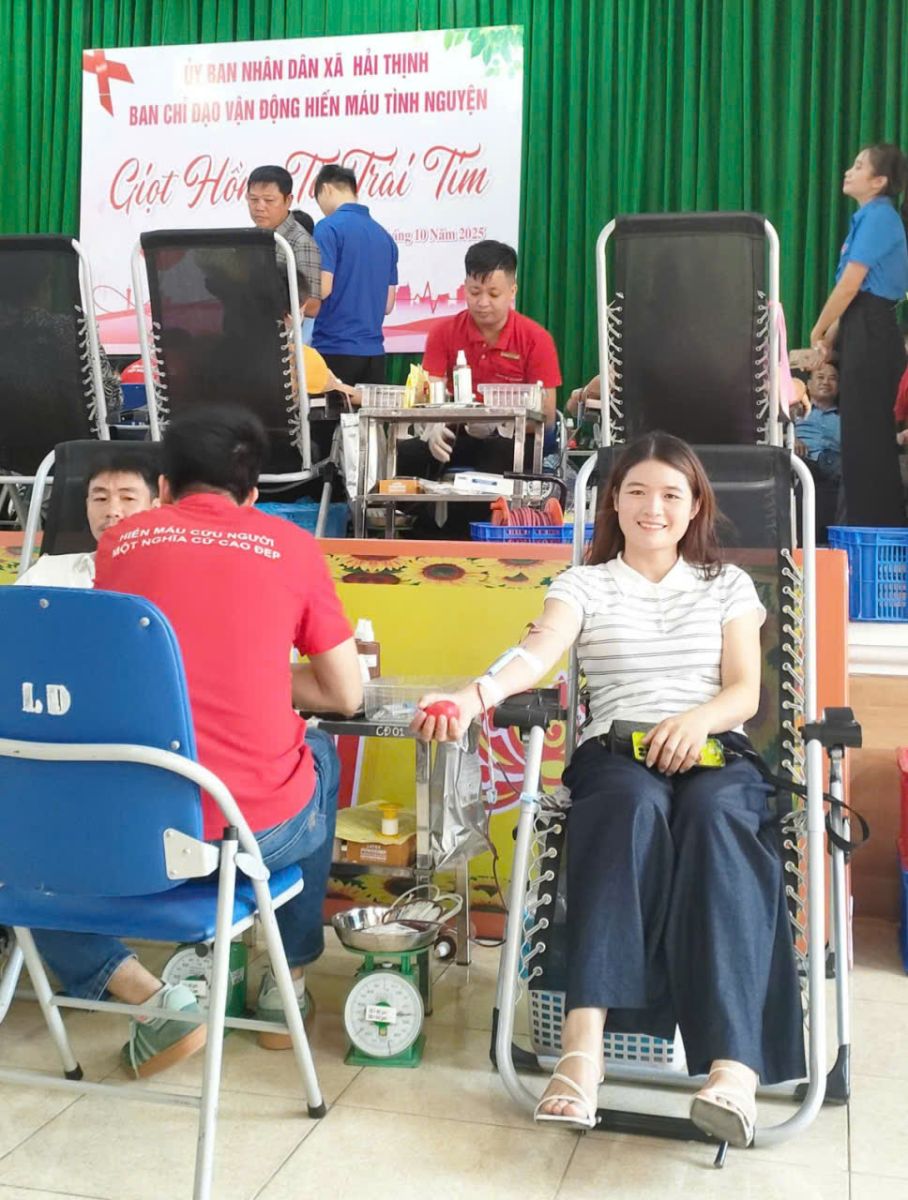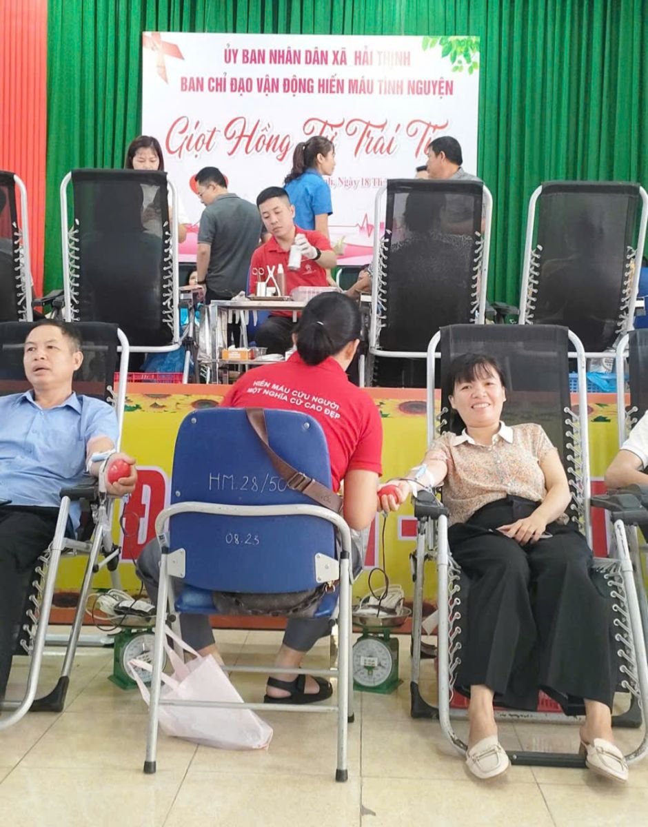 Thực hiện kế hoạch số 24/KH-UBND ngày 14/10/2025 của UBND xã Hải Xuân về việc Tuyên truyền, vận động hiến máu tình nguyện 03 tháng cuối năm 2025 trên địa bàn xã Hải Xuân, và giấy mời số 01/GM-UBND ngày 15/10/2025 của UBND xã Hải Xuân về việc mời tham gia hiến máu tình nguyên. Sáng ngày 18/10/2025 cán bộ, giáo viên, nhân viên Trường Tiểu học Hải Hòa đã tham gia hiến máu tình nguyện tại trụ sở Đảng ủy xã Hải Xuân. Ngày hội hiến máu đã diễn ra với chủ đề: “Giọt hồng từ trái tim”. Đây là hoạt động thường niên mang tính nhân đạo thu hút đông đảo cán bộ, viên chức, người lao động tham gia thể hiện nghĩa cử cao đẹp và tinh thần nhân văn sâu sắc.