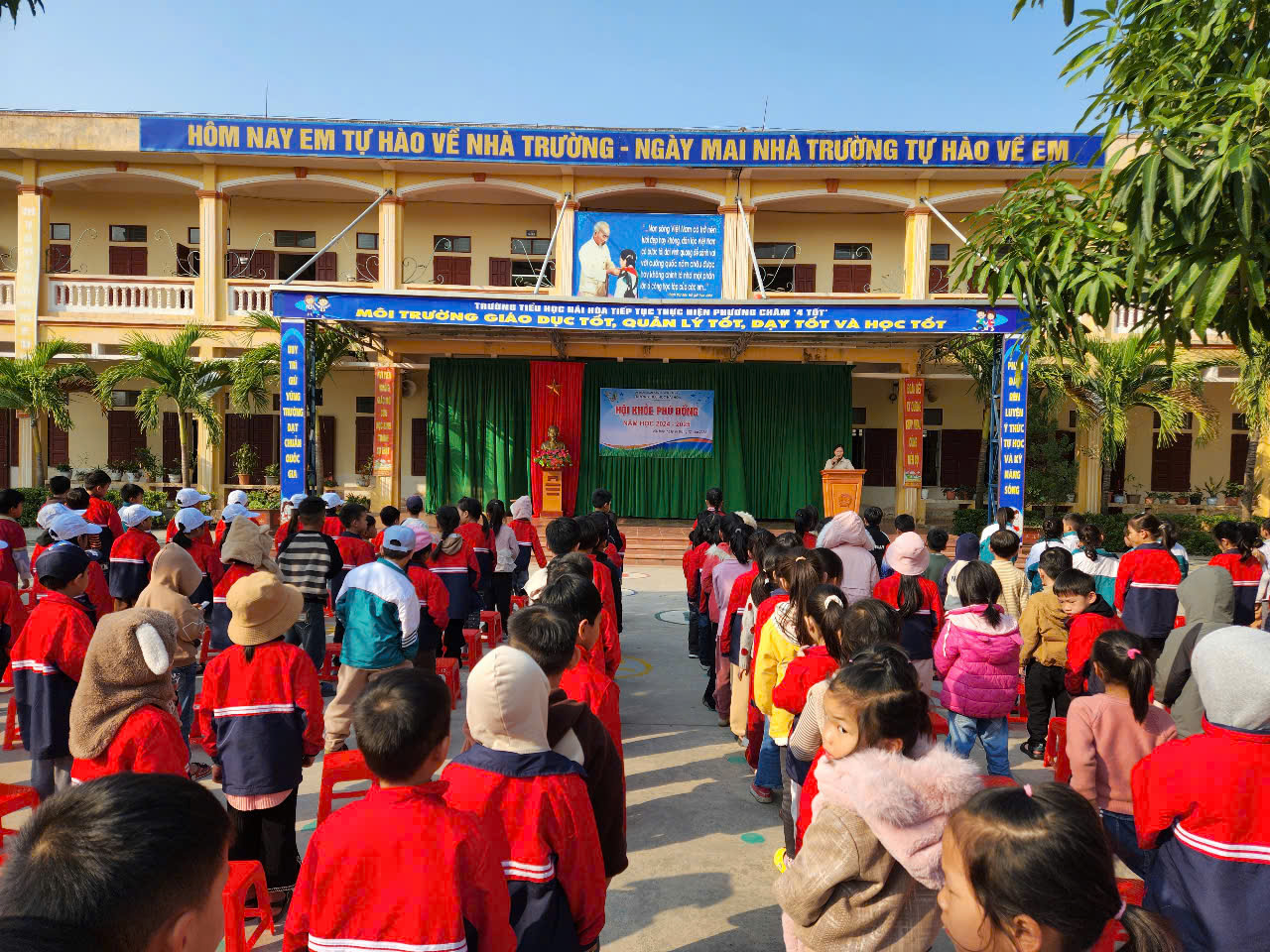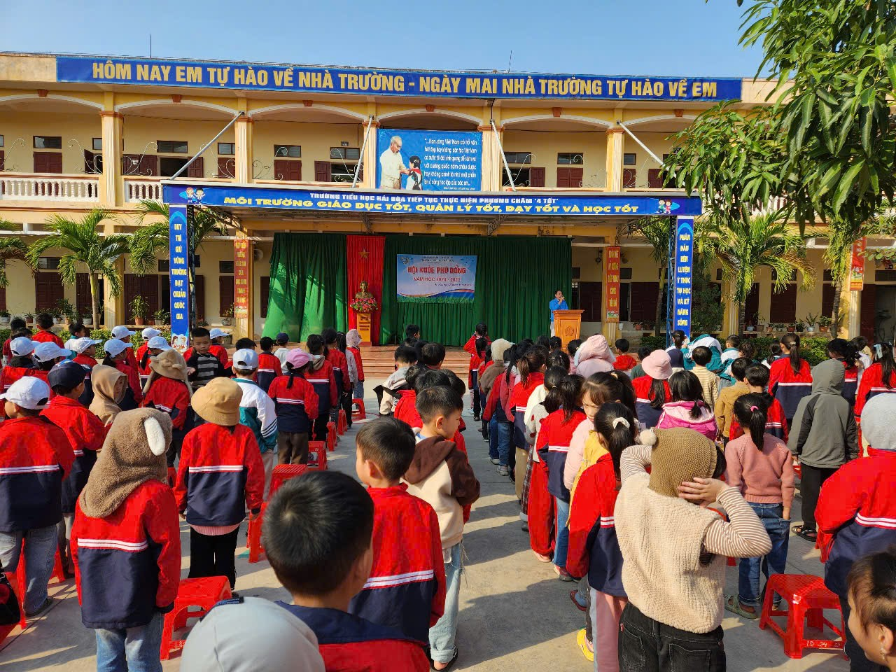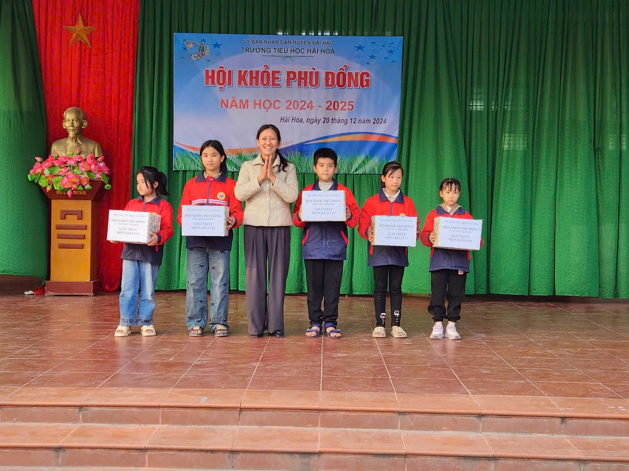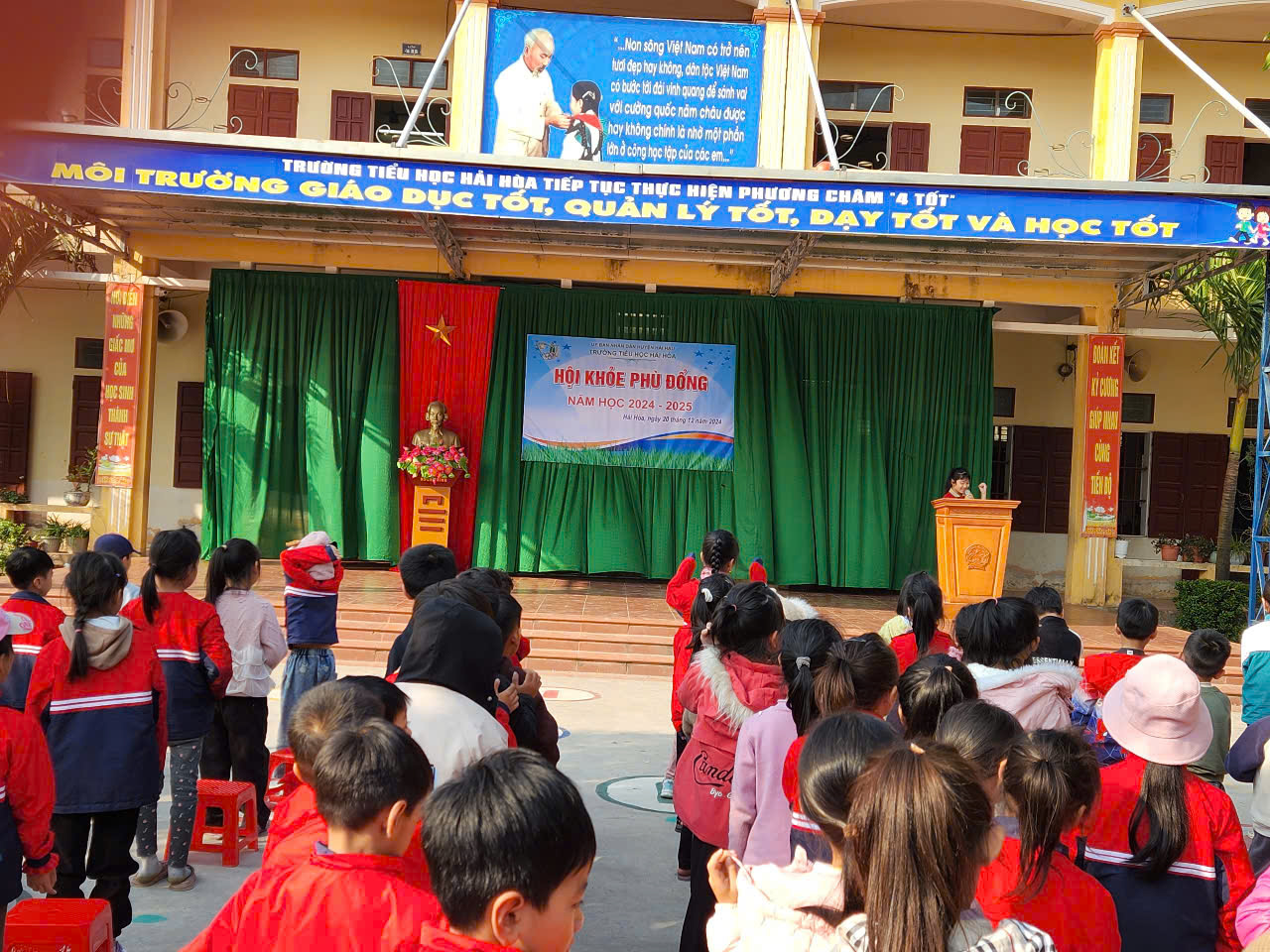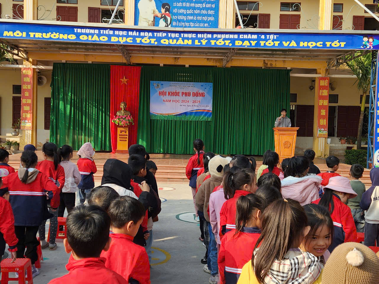 Hưởng ứng cuộc vận động “Toàn dân rèn luyện thể thao theo gương Bác Hồ vĩ đại” duy trì và đẩy mạnh phong trào rèn luyện thân thể cho học sinh trong nhà trường. Chiều ngày 20/12/2024 trường Tiểu học Hải Hòa tổ chức khai mạc Hội khỏe Phù Đổng cấp trường năm học 2024 – 2025. Đến dự lễ khai mạc Hội khỏe Phù Đổng có các thầy cô giáo trong Ban giám hiệu, đại diện hội cha mẹ học sinh cùng các thầy cô giáo chủ nhiệm – thầy cô bộ môn cùng với gần 800 học sinh, vận động viên là đại diện của 20 lớp trong nhà trường tham gia thi đấu ở các nội dung: Cờ vua, bóng bàn, bật xa, chạy 60m và kéo co.