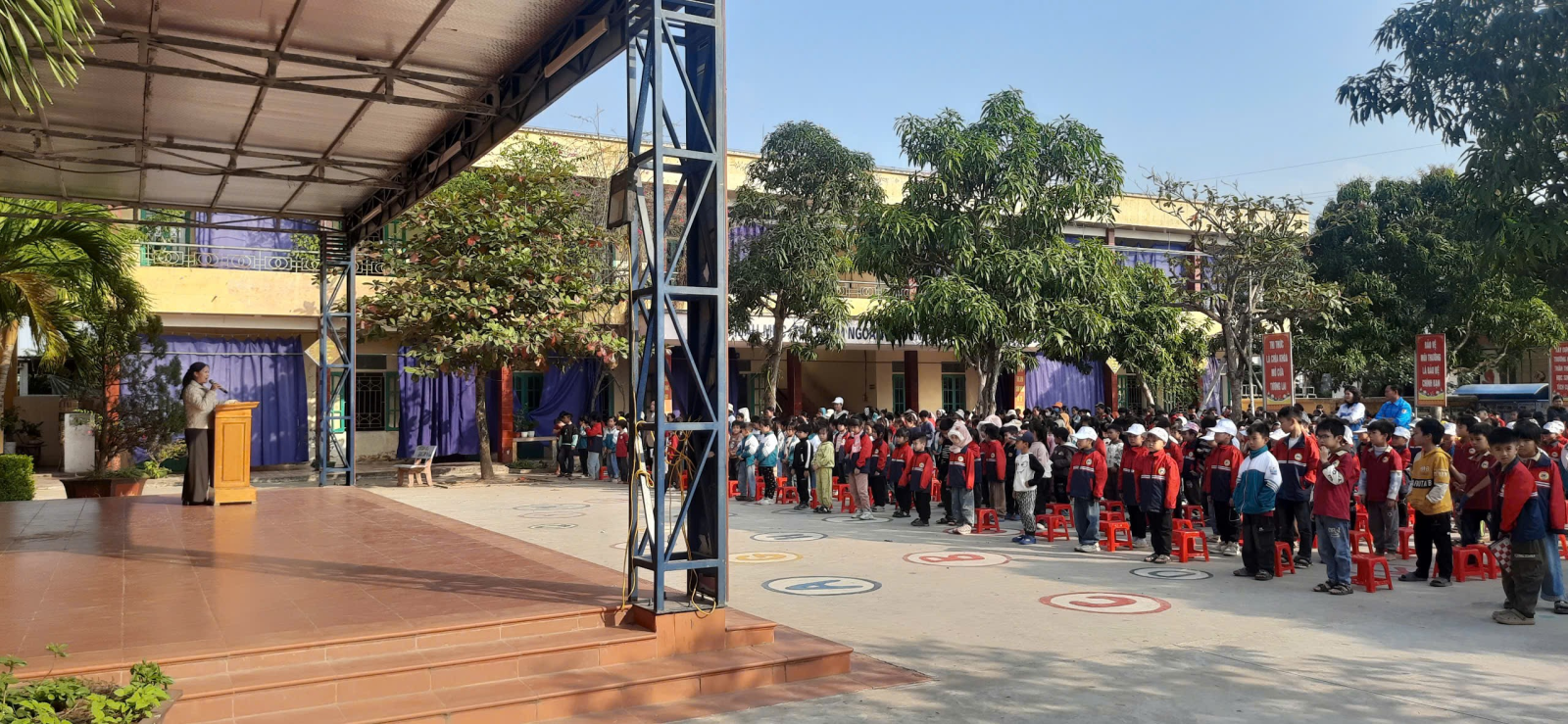 Ảnh Đồng chí Phạm Thị Yên- Bí thư chi bộ, Hiệu trưởng nhà trường đọc diễn văn khai mạc.