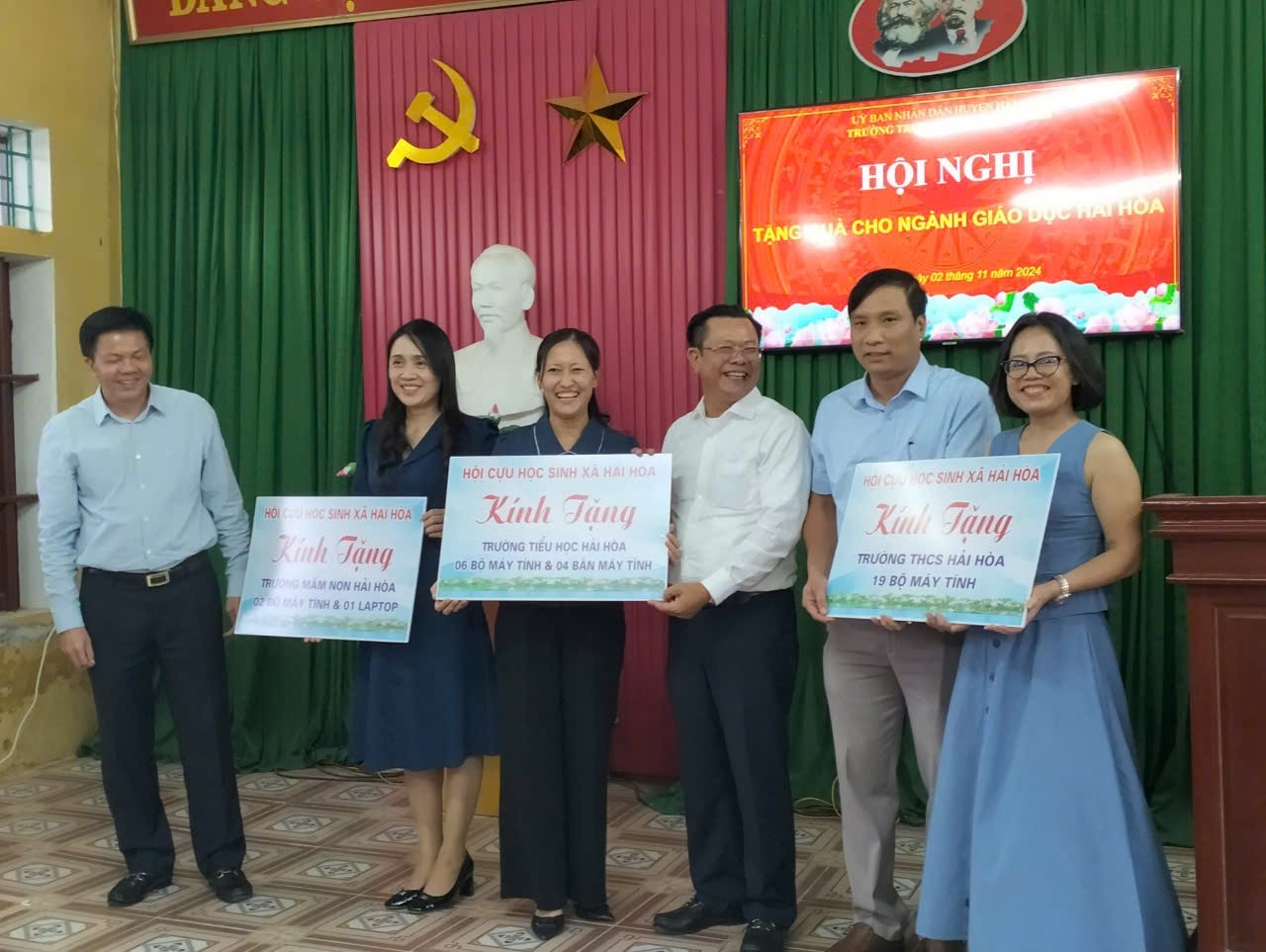 Chiều ngày 02/11/2024 Hội cựu Học sinh xã Hải Hòa đã về và trao tặng quà cho ngành giáo dục xã Hải Hòa với tổng số 27 bộ máy tính phục vụ cho việc giảng dạy và học tập. Trong đó trường Tiểu học Hải Hòa được tặng 06 bộ máy tính. Hội nghị được diễn ra với sự tham dự của Trưởng phòng Giáo dục đào tạo huyện Hải Hậu và đại diện lãnh đạo Đảng ủy, HĐND, UBND, các Đoàn thể xã Hải Hòa. Hội nghị diễn ra thành công tốt đẹp!