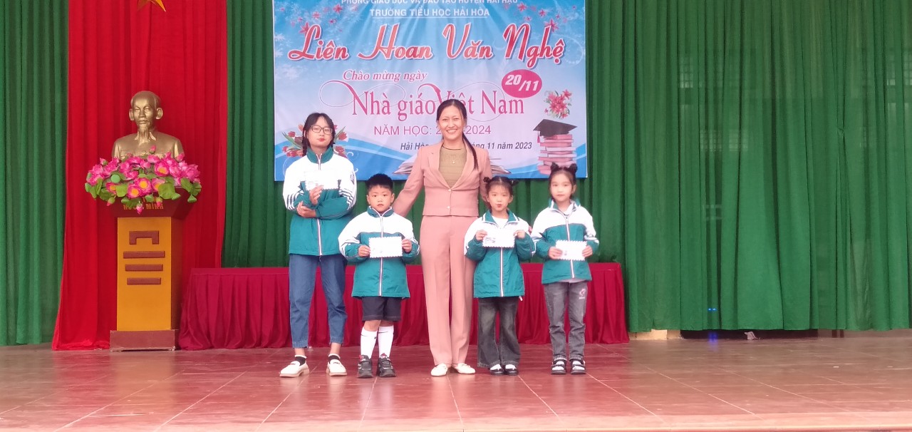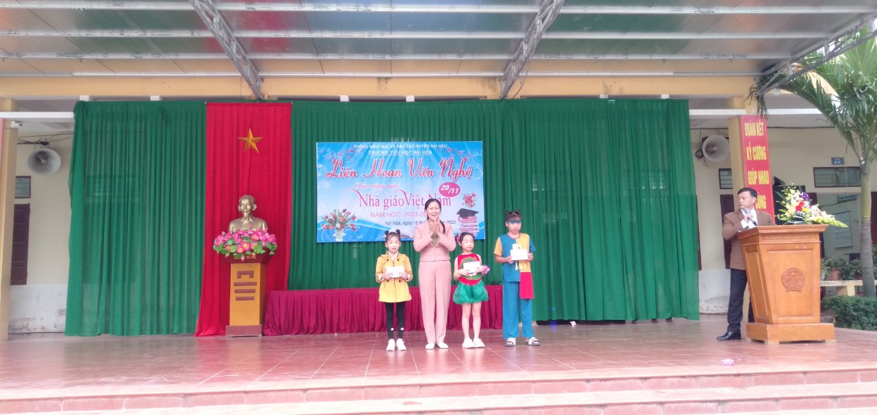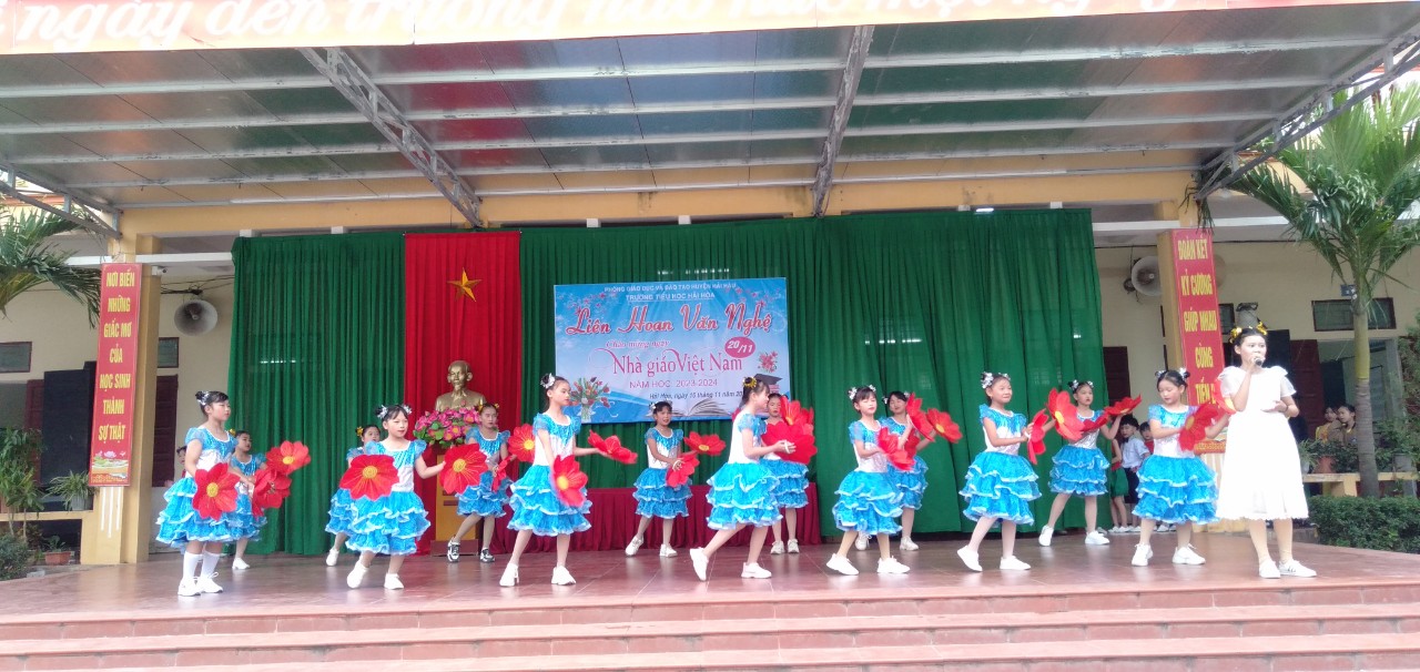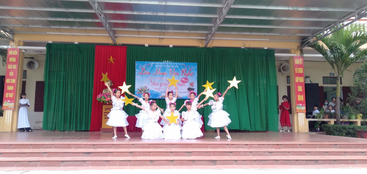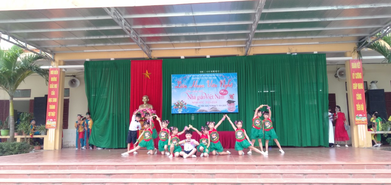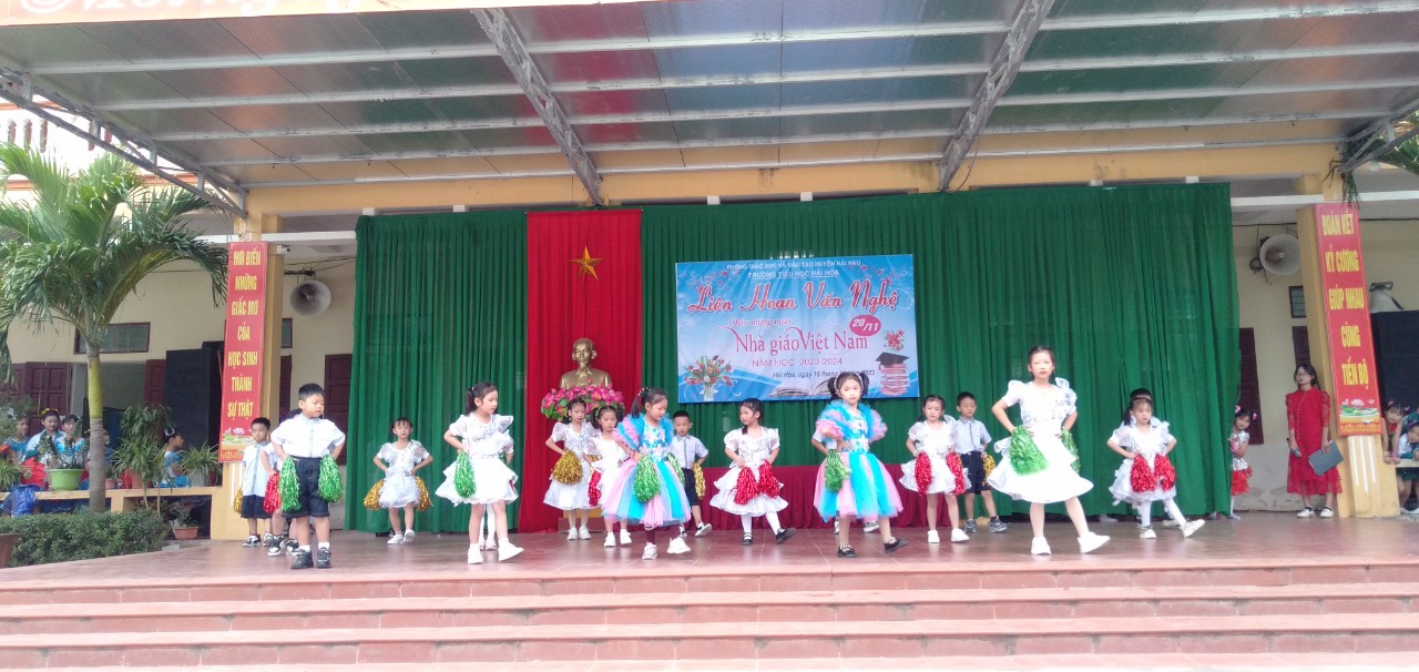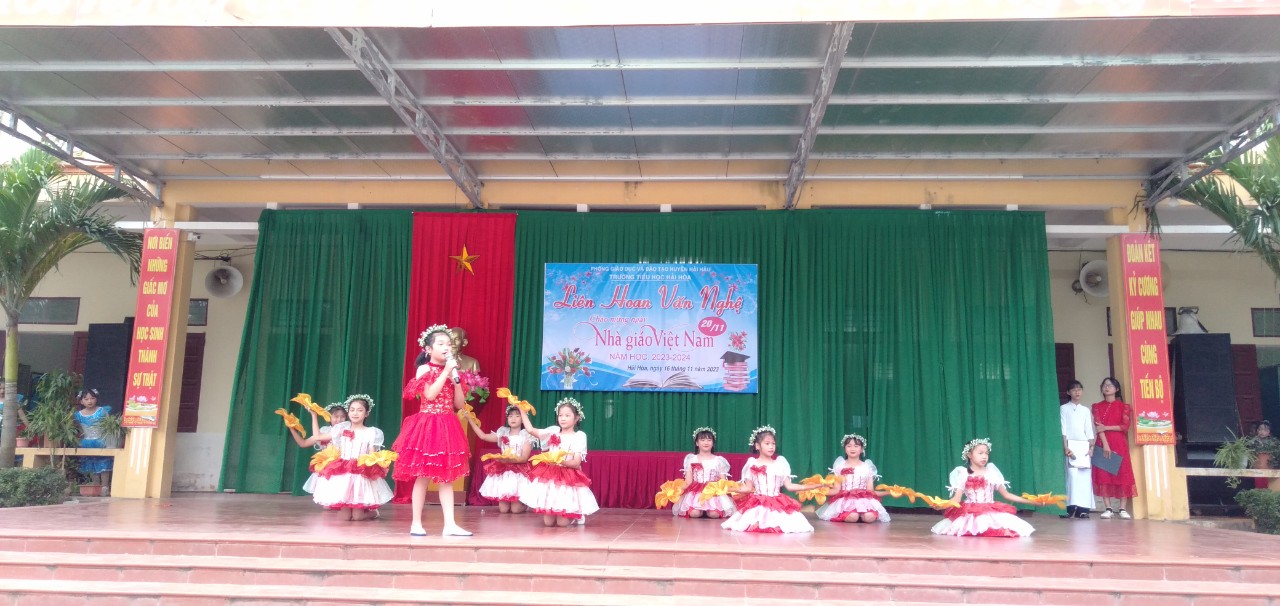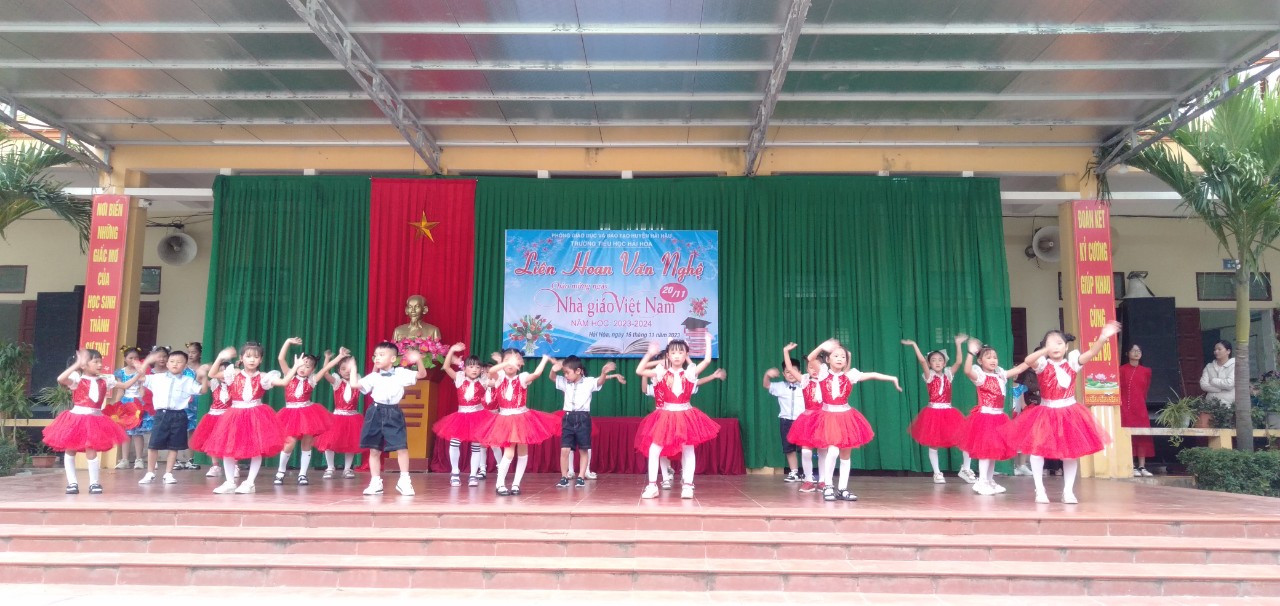 Cùng hòa chung với không khí cả nước, cũng là nhân dịp kỷ niệm 41 năm ngày nhà giáo Việt Nam (20/11/1982 – 20/11/2023). Chiều ngày 16/11/2023, trường Tiểu học Hải Hòa tổ chức liên hoan văn nghệ chào mừng. Đây là hoạt động thường niên có ý nghĩa thiết thực nhằm tôn vinh những đóng góp của các thế hệ nhà giáo đối với sự nghiệp trồng người.Là sân chơi lành mạnh, bổ ích, đẩy mạnh phong trào văn hóa văn nghệ trong cán bộ, nhân viên, giáo viên trong nhà trường, cũng như tăng cường sự kết nối giữa nhà trường với phụ huynh học sinh.
