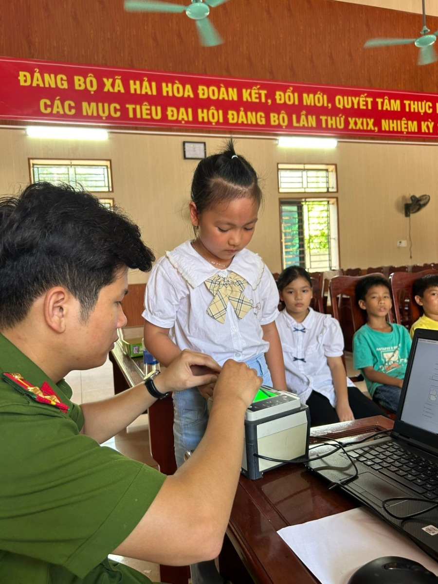 Phối hợp với lực lượng công an thực hiện việc cấp thẻ Căn cước cho học sinh Tiểu học trên địa bàn xã Hải Hòa