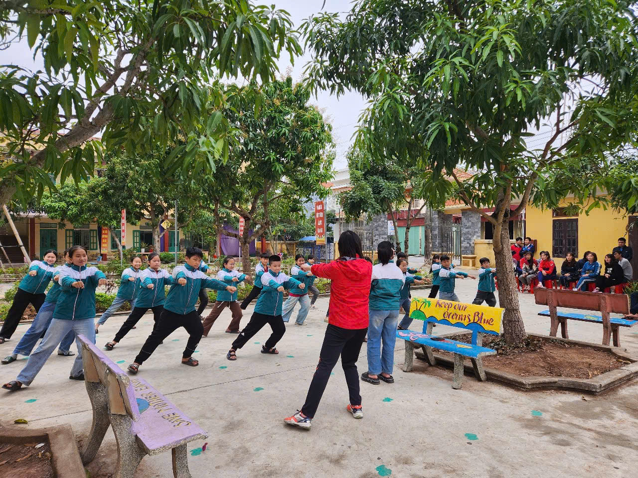 Trên cơ sở lý thuyết của chuyên đề đã được nghiên cứu thấu đáo, cô Trần Thị Hồng Thương – Giáo viên Trường Tiểu học Hải Hòa đã dạy minh họa Bài thể dục “Ôn bài thể dục phát triển chung” để toàn thể các thầy cô trong cụm miền dự và trao đổi.