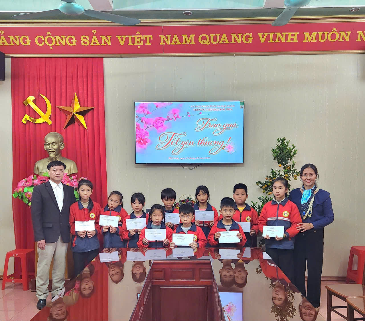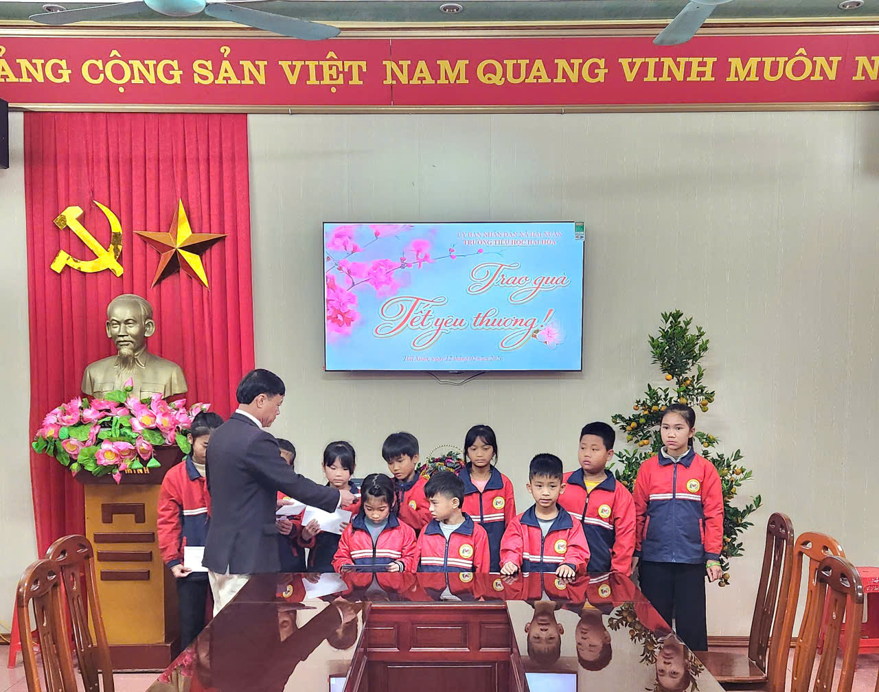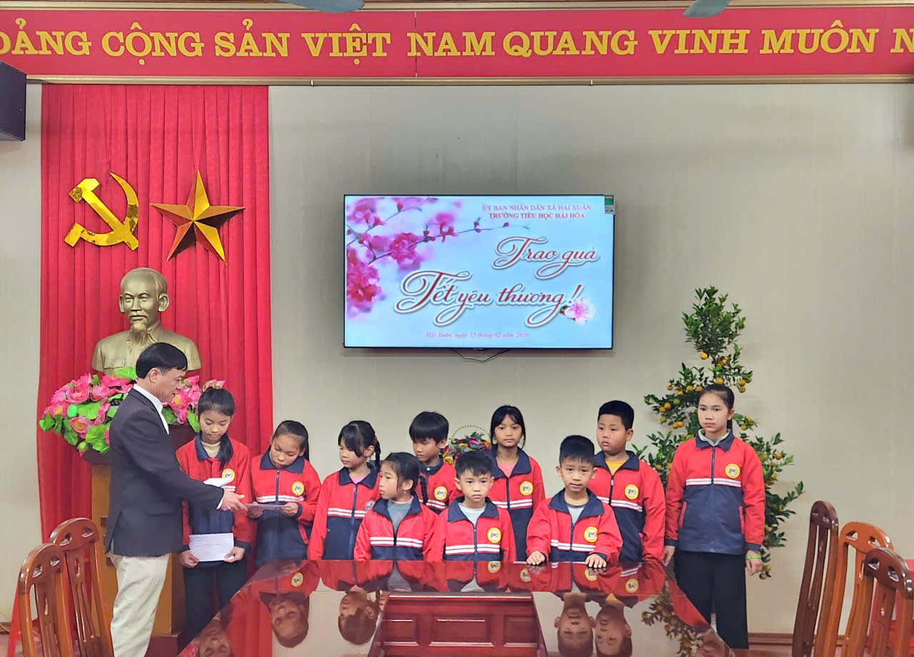 Chiều ngày 13/02/2026 Trường Tiểu học Hải Hòa đã trao tặng quà Tết yêu thương cho những em học sinh có hoàn cảnh khó khăn trích từ quỹ Khuyến học của nhà trường trị giá 300.000đ/học sinh. Với mong muốn các em có một cái Tết thật ấm áp và đầy đủ hơn, không bị bỏ lại phía sau