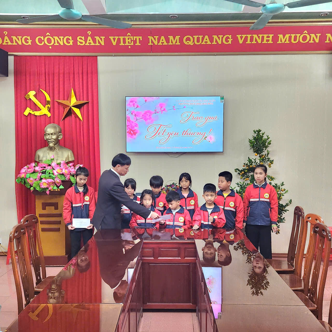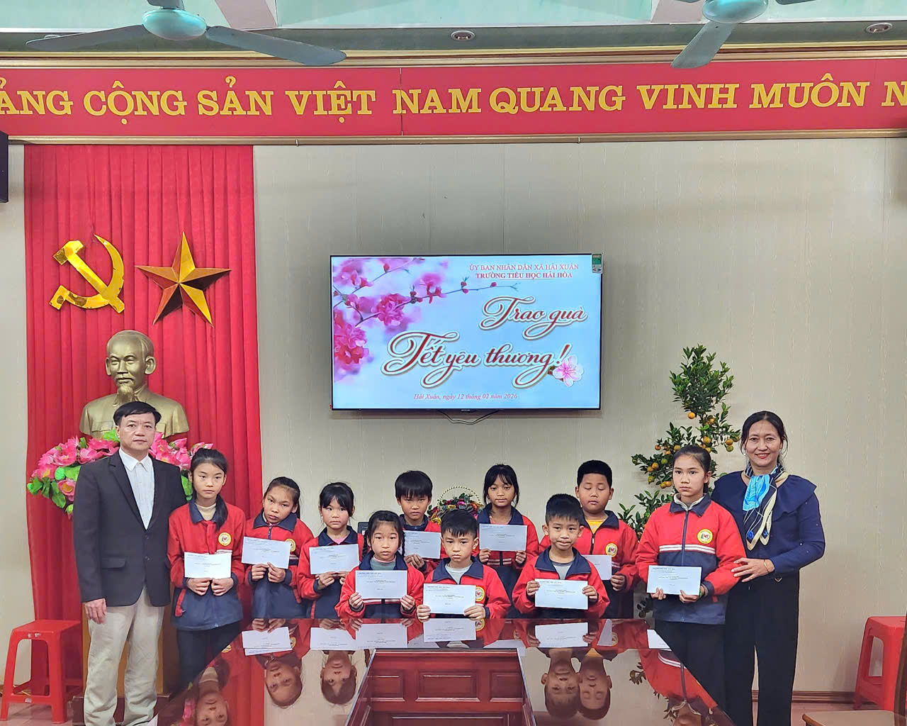 Trao quà Tết yêu thương cho các em học sinh có hoàn cảnh khó khăn của Trường Tiểu học Hải Hòa.